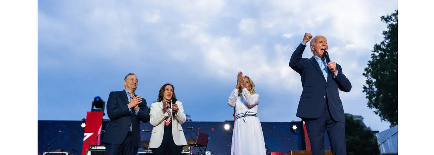 Daily video and cumulative other slips and trips like this video remind voters, backers and donors of how old and frail Biden is. Pundits have tried desperately to shift the narrative to Proj 2025 in a bizarre move to change the discussion to Trump. Despite the fact there are no solid anchors in reality connecting Trump's next administration to the Heritage Foundation. If anything, a 2nd Trump term would most likely correct the mistakes of the first. It reeks of attempts to tie Trump to extreme policy measures which have not landed against him since the debate. In short no test rhetoric has worked — which would have pre-debate.